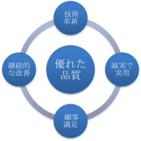 お客様のニーズを満たすためのコアとしての品質、技術的能力を向上させる、誠実で実用的な態度、継続的な改善の精神。