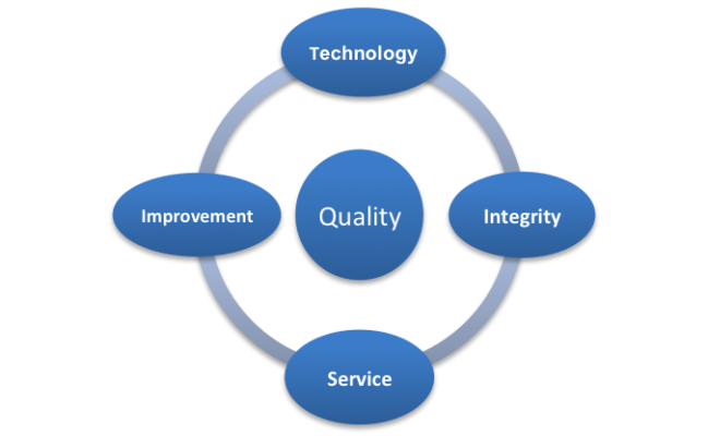 Quality Mind、Technical Innovation 、Integrity Attitude、 Continuous Improvement、Customer Fulfillment